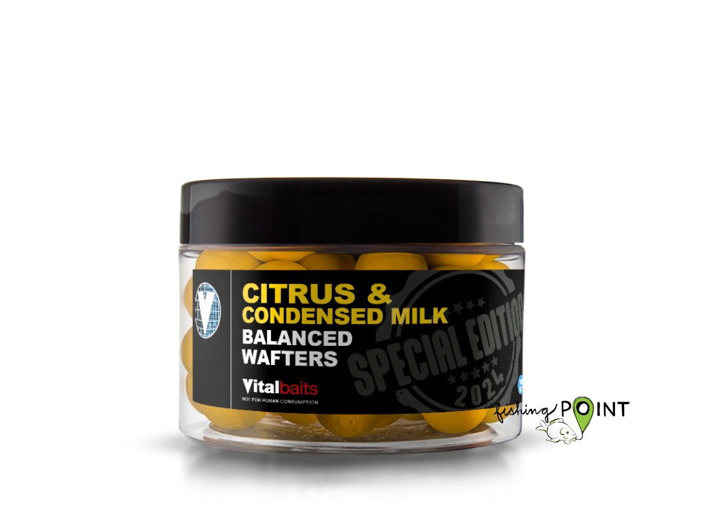 Vyvážené nástrahy Wafter Citrus & Condensed Milk “Special Edition” jsou ideální pro rybáře, kteří hledají rychlé a účinné nástrahy, nebo kteří chtějí zaujmout i ty nejvíce opatrné ryby. Působí přirozeněji než klasické boilies nebo pop-up, ale zároveň naše unikátní receptura použitá při výrobě zajišťuje, že fungují opravdu dlouho. Vyrábíme je v průměrech 14 a 18 mm a jsou dodávány ve 100 g balení.Doplňkové parametry