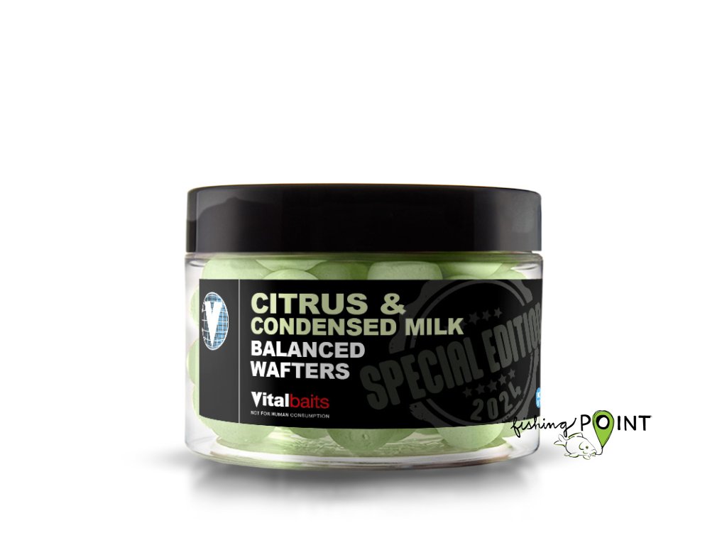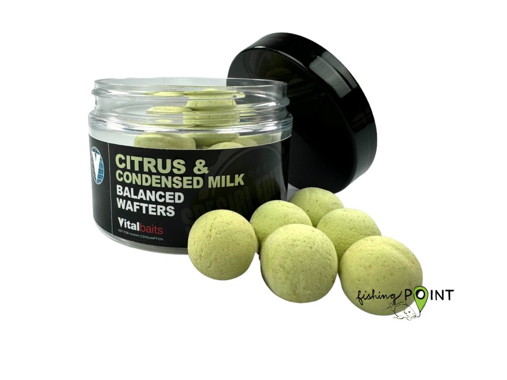 Vyvážené nástrahy Wafter Citrus & Condensed Milk “Special Edition” jsou ideální pro rybáře, kteří hledají rychlé a účinné nástrahy, nebo kteří chtějí zaujmout i ty nejvíce opatrné ryby. Působí přirozeněji než klasické boilies nebo pop-up, ale zároveň naše unikátní receptura použitá při výrobě zajišťuje, že fungují opravdu dlouho. Vyrábíme je v průměrech 14 a 18 mm a jsou dodávány ve 100 g balení.Doplňkové parametry