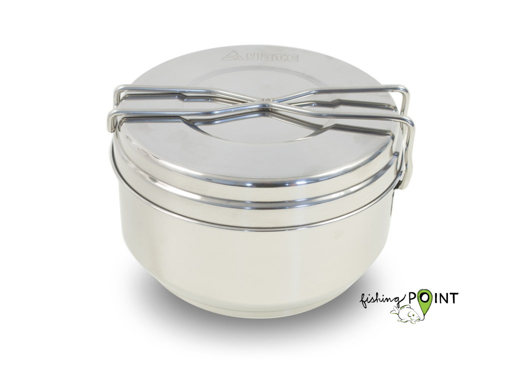 Sada nerezových ešusů z kvalitního pevného materiálu. Složení: velká miska 1,25 l, malá miska 0,85 l, víčko 0,3 l. Nerez je pro potraviny vhodnější než hliník. Parametry Materiál: Nerez Hmotnost: 520 g Rozměr balení: 160x110 mm Rozměr: 160x110 mm Průměr: 16 cm Objem: 1.25 + 0.85 + 0.3 l Obecné informace o produktu Záruční doba 24 měsíců Výrobce YateDoplňkové parametry