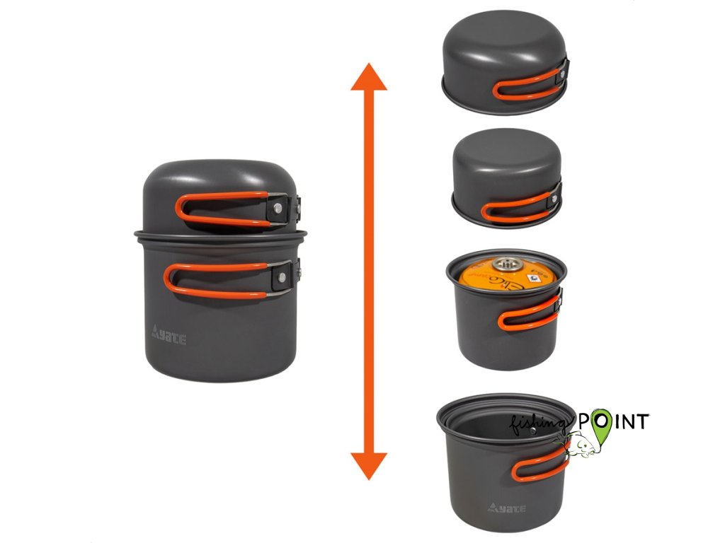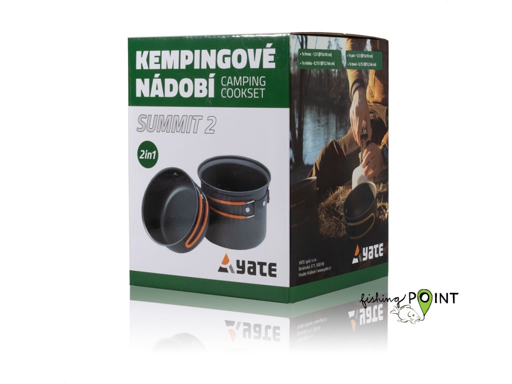 Sada nádobí pro 1-2 osoby z eloxovaného potravinářského hliníku je opatřena vrstvou odolnou proti oděru. Držadla jsou chráněna silikonem proti popálení a jsou příjemná do ruky. Dodáváno včetně přepravního obalu.Velmi lehká a kompaktní. Do hrnce se pohodlně vejde kartuš na plyn (300 i 500g) a vařič.Obsahuje:1x hrnec - 1,5 l (15x10 cm)1x miska - 0,75 l (13,7x6 cm)Materiál: Hliník, kovová držadlaRozměr balení: 15x15 cmHmotnost: 300 gParametryMateriál: Hliník, kovová držadla Hmotnost: 300 g Rozměr balení: 150x150 mm Obecné informace o produktuZáruční doba 24 měsícůVýrobce: Yate