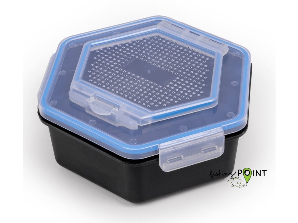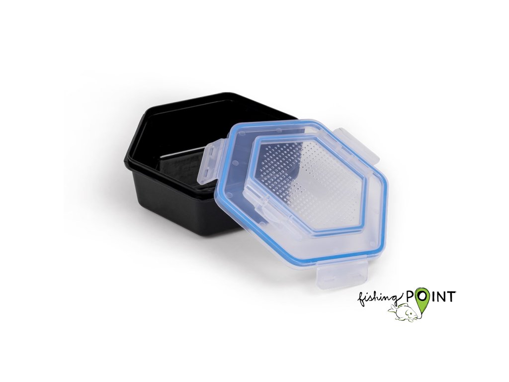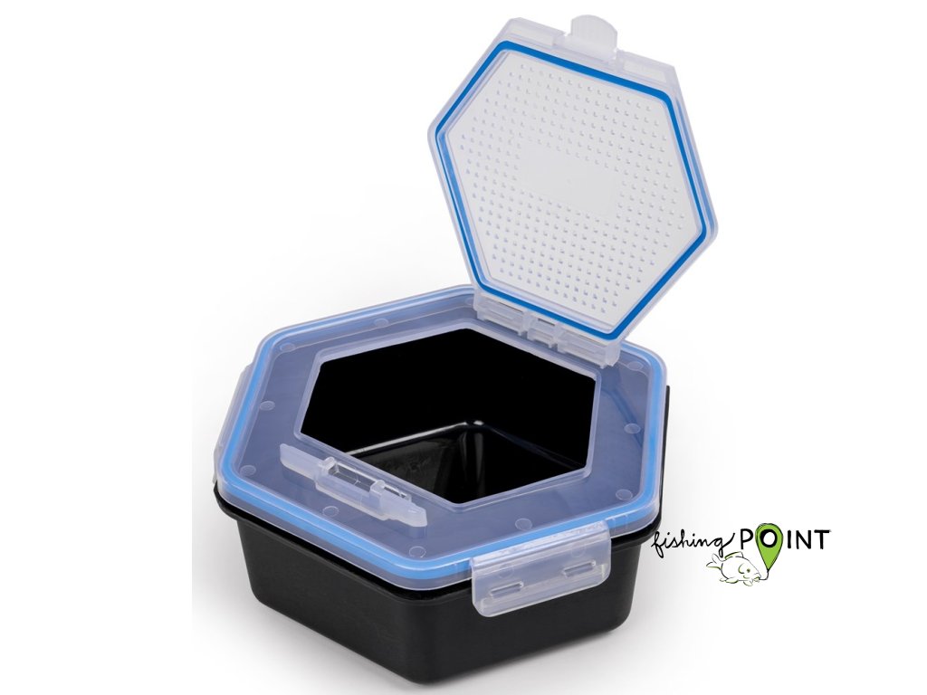 Pevná konstrukce víka s klipem bezpečně zaklapne na všech čtyřech stranách. Každé víko má zabudovaný únikový poklop a zúžené vzduchové otvory, které zabraňují úniku nástrahy. Každá krabička na nástrahy má ve tmě svítící gumové těsnění. Víčka jsou univerzální pro všechny velikosti krabiček. Odolný vstřikovaný polypropylen.Uzamykatelné pozice na dně krabičky pro stohování při skladování.Dostupná v objemech: 1l, 1,5l a 2l.