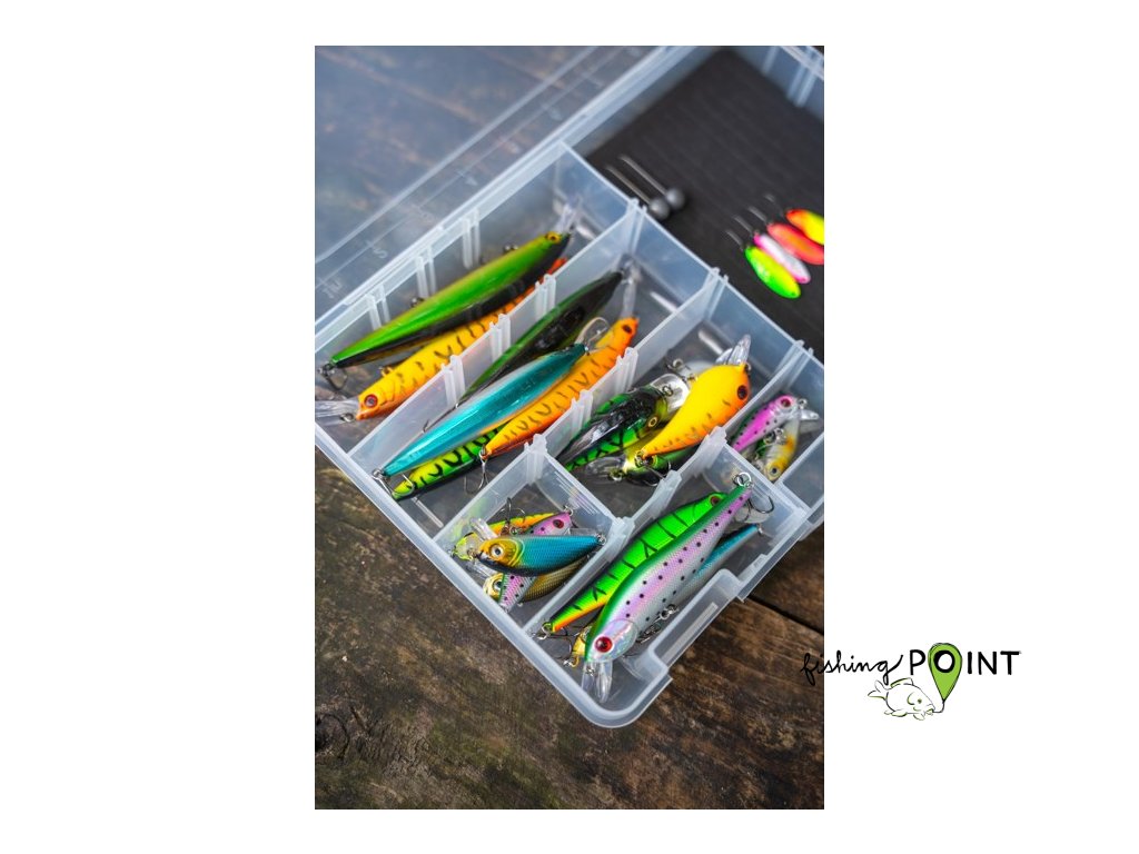 Krabička pro uložení jigheadů, malých nástrah a doplňků, ideální pro lehkou přívlač na okouny, štiky, candáty, pstruhy a jelce.