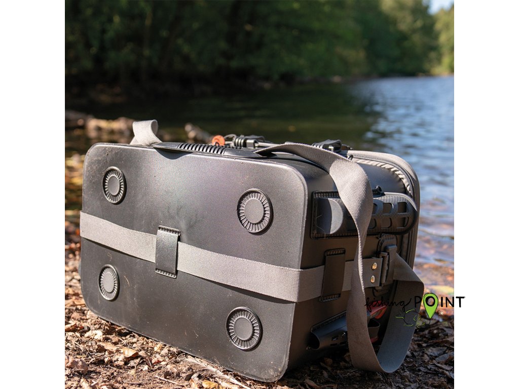 Tackle Container Pro má stěny z EVA o šířce 2 mm. Díky tomu je obsah tašky velice dobře chráněn. Víko tašky přesahuje přes okraj, což zabraňuje průniku vlhkosti do tašky. V kombinaci s Tackle Boxen, Window Bags a Leader Pocket si zachováte obsah velice přehledný. Na každé straně tašky se nachází jeden držák prutu, kam můžete prut postavit např. při vázání montáže, nebo výměně nástrahy. Dvě bezpečné kapsy po stranách jsou ideální na kleště, či nůžky.síla materiálu: 2,0 mmmateriál: EVApoužité zipy: YKK #8doplňující 1: extra silná síla stěnyvelikost: Lrozměry: 40 x 26 x 25 cmdoplňující 2: vhodná i pro těžký obsahdoplňující 3: ramenní popruhdoplňující 4: tvrzené víko