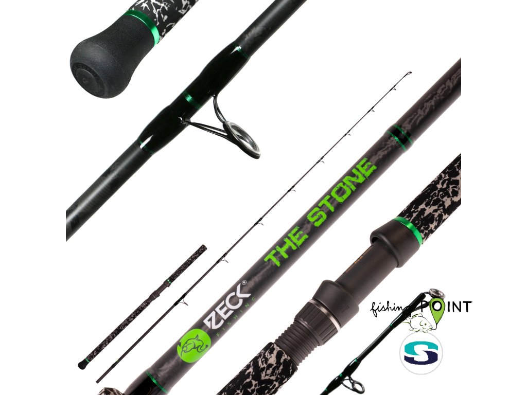 The Stone je, jak název napovídá, předurčen pro lov prostřednictvím montáží na dně. Měkká špičková akce přechází postupně do akce semiparabolické s brutálně silnou páteří. To je možné pouze při použití blanku se silnými stěnami. Takto koncipovaný blank nelze dělit klasicky na dvě stejně dlouhé části. Proto jsme použili koncept známý z mořského rybolovu, který jste rovněž mohly vidět a vyzkoušet u našeho Vertical Spin, tedy s dělením u držadla. Kromě ideální akce jsme chtěli vyvinout tenký blank s nízkou hmotností a zároveň obrovskou robustností. Každý, kdo zažije The Stone poprvé v akci, potvrdí, že jsme uspěli. Měkčí špička umožňuje velmi dobrou absorpci návnady a zajišťuje ideální detekci záběru. The Stone můžete velmi dobře použít pro Slag – Line rybaření. Při tomto způsobu lovu se kmenová šňůra úmyslně nechává povolená, aby vibrace způsobené větrem nebo proudem nemohly být transportovány až k nástraze, jako je tomu často u vyšponovaných kmenových šňůr. Samozřejmě můžete The Stone použít i pro vyvázání montáže do vzdálenosti až 150 metrů. Každý z našich prutů je bezpečně zabalen a dodáván ve vysoce kvalitním pouzdru na pruty. délka: 270 cmgramáž: 300 gtechnika lovu: podvodní splávek + vyvážení do 150 mtrans. délka prutů: 197 cmdělení: 1+1váha prutu: 445 gmateriál blanku: Graphitočka: 8+1 Sea Guidestartovací očko: 25 mmsedlo navijáku: Fuji DPS H/#22délka zadní rukojeti: 43 cmmateriál rukojeti: EVA Camouprůměr koncovky: 38 mmmateriál koncovky: Fuji tvrzená gumaDoplňkové parametry