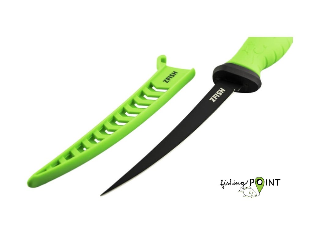 ZFISH Filetovací Nůž Furio Fillet Knife 7"/175mm je nůž opatřený jednoduchou, velice tenkou a pružnou čepelí a je tedy primárně určen k filetování ryb. Čepel je zhotovena z kvalitní nerezové oceli s černou povrchovou úpravou a je precizně dílensky zpracovaná a nabroušená. Nůž se může také pochlubit pogumovanou ergonomickou rukojetí pro pohodlný, ale hlavně bezpečný úchop. Nůž je dodáván s pevným plastovým pouzdrem pro bezpečné uložení a transport. Rukojeť i pouzdro jsou provedeny ve fluo zelené barvě, takže nůž nejen dobře vypadá, ale jen tak se Vám neztratí.Kvalitní filetovací nůž z nerezové oceli s černou povrchovou úpravou