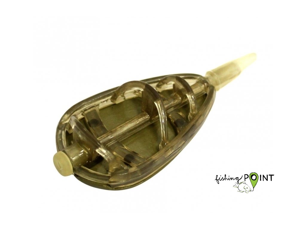 Perfektně zpracované method flat krmítko střední velikosti vhodné pro lov na method feeder nebo lehkou kaprařinu. Spolu s naší měkkou formičkou tvoří velmi praktický a oblíbený set pro každodenní rybolov. Jeho vynikajícími vlastnostmi jsou aerodynamický tvar pro přesné a daleké nahazovaní, dobrá fixace na dně a možnost vložit nástrahu s háčkem přímo do krmítka mezi žebra pro zvýšení šance na úlovek. Se stlačenou krmítkovou směsí nebo method mixem nahodíte krmítko skutečně daleko i za silnějšího větru. Díky svému tvaru drží krásně na dně i v proudící vodě. Součástí krmítka je rychlovýměnný klip pro rychlou výmenu návazce. Když klip vyjmete tak můžete použít krmítko jako průběžné a nebo zafixovat montáž s pevnostním obratlíkem velikosti 8, který přímo pasuje do krmítka.Doplňkové parametry