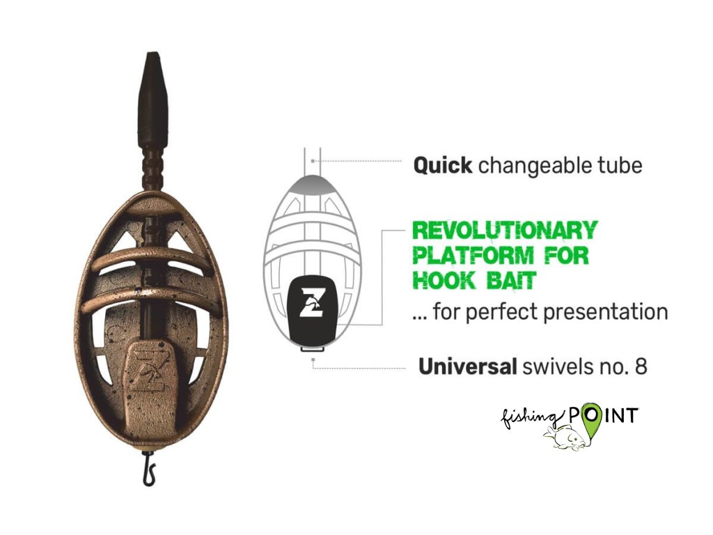 ZFISH Method Feeder ZFX jsou špičková a propracovaná method krmítka "NOVÉ GENERACE" z prémiové řady “3Fish”. Na vývoji těchto sofistikovaných krmítek se podílel team našich specialistů a jsou skutečně promyšlená do posledního detailu. Krmítka mají ideální velikost a jsou dokonale vyvážená, takže se s nimi dobře nahazuje a ke dnu dosednou vždy tou správnou stranou. Revoluční novinkou u těchto krmítek je speciální můstek/ploška k umístění nástrahy s háčkem, což zaručí, že Vaše nástraha bude vždy přesně tam, kde má být. Velkou výhodou krmítka je možnost snadné a rychlé výměny zátěže. Umožňuje to vyjímatelná trubička a průřez na zadní straně krmítka. Po vysunutí trubičky z těla krmítka stačí vyjmout vlasec a vyměnit zátěž za jinou. Taková variabilita vám poskytne možnost přizpůsobení se různým podmínkám během lovu, bez nutnosti zdlouhavého převazování koncové sestavy. Krmítka jsou zhotovena v matně hnědé barvě s černými tečkami, takže snadno splynou se dnem a ryby v okolí krmného místa nebudou tolik vyrušovat. Součástí je samozřejmě i univerzální QC obratlík vel. 8 pro snadnou výměnu koncového návazce.