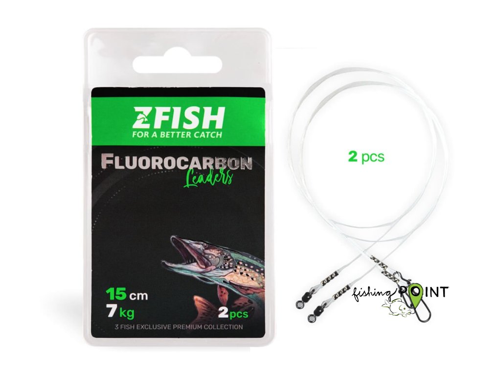 ZFISH Fluorocarbon Leader s označením "3Fish", to jsou fluorocarbonová lanka na dravce prémiové kvality. Všechny produkty z řady ""3Fish"" vynikají nekompromisním poměrem kvality materiálů, zpracováním a cenou. Na tato “FC” lanka se můžete spolehnout a díky špičkové kvalitě použitého fluorocarbonu, jsou pro ryby prakticky neviditelná a narozdíl od kovových lanek nemají vůbec žádnou tvarovou paměť.
