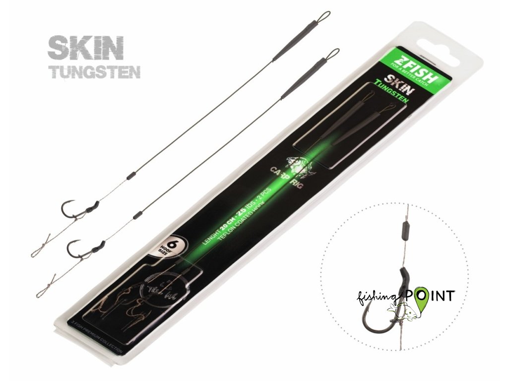 Tento prémiový, ručně vázaný návazec je ideální volbou pro rybáře, kteří hledají kvalitu, spolehlivost a maximální efektivitu při lovu kaprů. Díky pečlivě vybraným komponentům prvotřídní kvality vám poskytne jistotu v každé situaci a pomůže dosáhnout lepších výsledků. Teflonový háček Wide Gape je nejen maximálně ostrý, ale také dokonale odolný vůči opotřebení a korozi. Kvalitní svlékací šňůrka nabízí vynikající odolnost vůči oděru, což zajišťuje dlouhou životnost i při intenzivním používání. Prémiové tungstenové komponenty výrazně zvyšují stabilitu montáže. Rovnátko zajistí správný úhel natočení háčku a tím zlepší úspěšnost zaseknutí. Tungstenový antitangle převlek pak minimalizuje riziko nežádoucího zamotání během náhozu a zároveň dokonale kopíruje dno. Tato zcela nová řada s označením "3Fish", to je bižuterie v prémiové kvalitě. Kdo jednou zkusí a pozná ten rozdíl, jiné už chtít nebude.Hotový návazec Skin Tungsten Rig - 2 ks