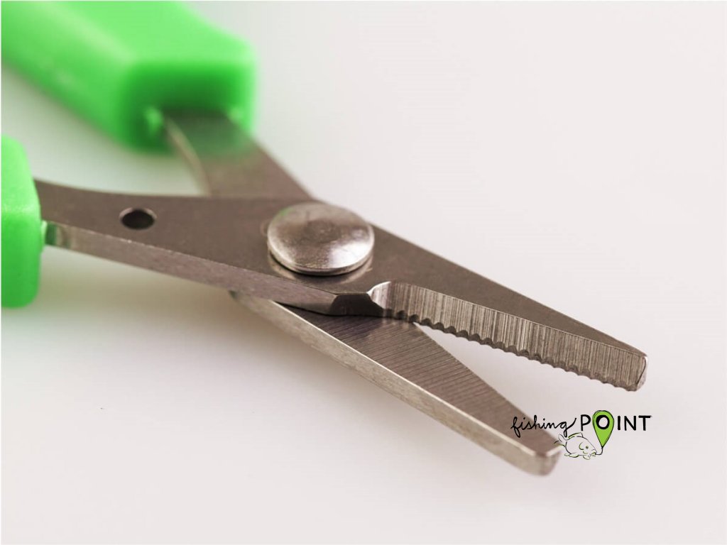 Ostré mini nůžky pro perfektní stříhání vlasce nebo šňůry. Nůžky se příjemně používají a díky své kompaktní velikosti se vejdou do všech pouzder nebo rybářských boxů. Jsou vyrobené z kvalitních materiálů a díky vroubkovanému břitu stříhají pletené šňůrky a vlasce jedna radost. Výhodou je také svítivé zelené zbarvení, díky kterému jsou nůžky snáze viditelné a takže se jen tak neztratí a budou snadno dohledatelné mezi ostatními věcmi v boxech nebo na stolku.Vyrobené z nerezové oceli