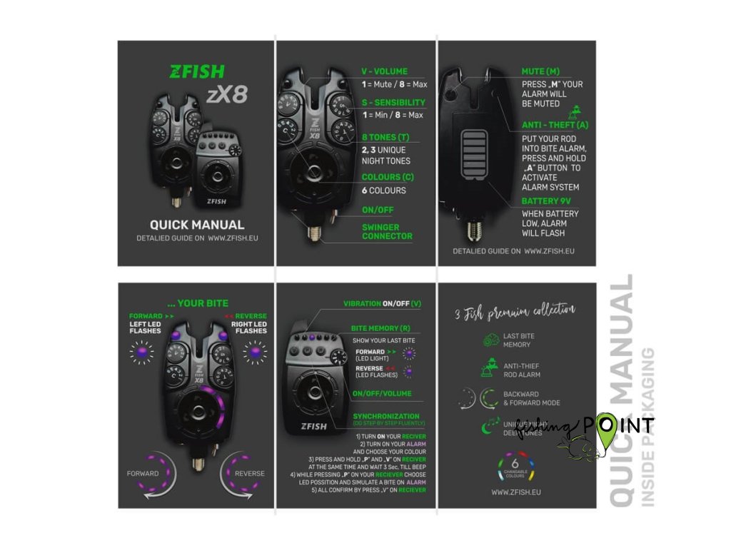 ZFISH Bite Alarm Zx8 je nepochybně naše nová vlajková loď mezi hlásiči. Při vývoji a navrhování těchto hlásičů jsme kladli důraz na odstranění všech běžných nešvarů a můžete si být jistí, že tyto hlásiče jsou skutečně “vymazlené” do posledního detailu, zkrátka hlásiče nové generace. Zx8 disponují 6-ti barvami a dokonce 8-mi zvukovými tóny ( z nichž 2 jsou zcela unikátní hluboké tóny speciálně navržené pro noční rybolov ) a navíc jsou opatřeny alarmem proti krádeži. Další užitečnou funkcí je paměť záběrů, která vám umožní zjistit zda jste měli “jízdu” (záběr vpřed ), nebo takzvaný “padák” ( zpětný záběr směrem k vám ). Samozřejmostí jsou vibrace příposlechu a snadné nastavení celkové citlivosti a hlasitosti. Zx8 byly testovány v extrémních podmínkách, takže za jejich odolnost proti vodě a prachu, můžeme dát ruku do ohně a navíc bezproblémů fungují až na vzdálenost 200m.Dlouhý proces vývoje dotažen k dokonalosti, naše TOP hlásiče nové generace