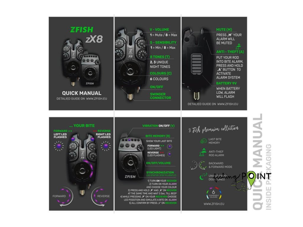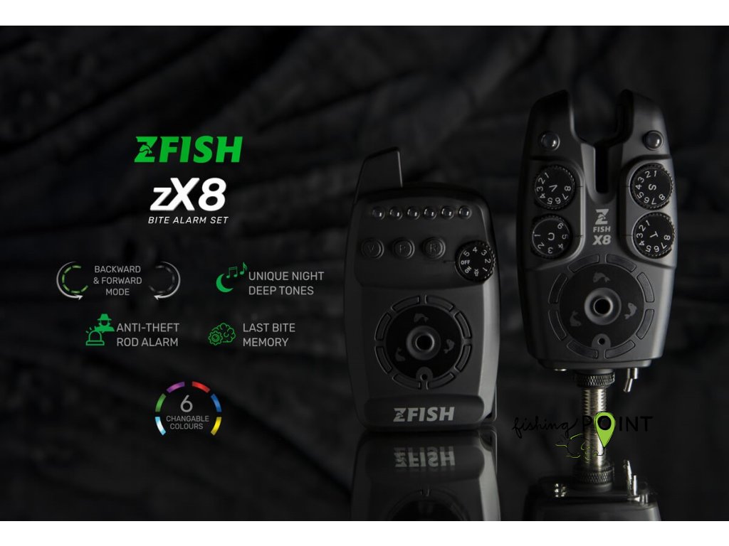 ZFISH Bite Alarm Zx8 je nepochybně naše nová vlajková loď mezi hlásiči. Při vývoji a navrhování těchto hlásičů jsme kladli důraz na odstranění všech běžných nešvarů a můžete si být jistí, že tyto hlásiče jsou skutečně “vymazlené” do posledního detailu, zkrátka hlásiče nové generace. Zx8 disponují 6-ti barvami a dokonce 8-mi zvukovými tóny ( z nichž 2 jsou zcela unikátní hluboké tóny speciálně navržené pro noční rybolov ) a navíc jsou opatřeny alarmem proti krádeži. Další užitečnou funkcí je paměť záběrů, která vám umožní zjistit zda jste měli “jízdu” (záběr vpřed ), nebo takzvaný “padák” ( zpětný záběr směrem k vám ). Samozřejmostí jsou vibrace příposlechu a snadné nastavení celkové citlivosti a hlasitosti. Zx8 byly testovány v extrémních podmínkách, takže za jejich odolnost proti vodě a prachu, můžeme dát ruku do ohně a navíc bezproblémů fungují až na vzdálenost 200m.