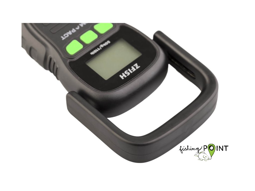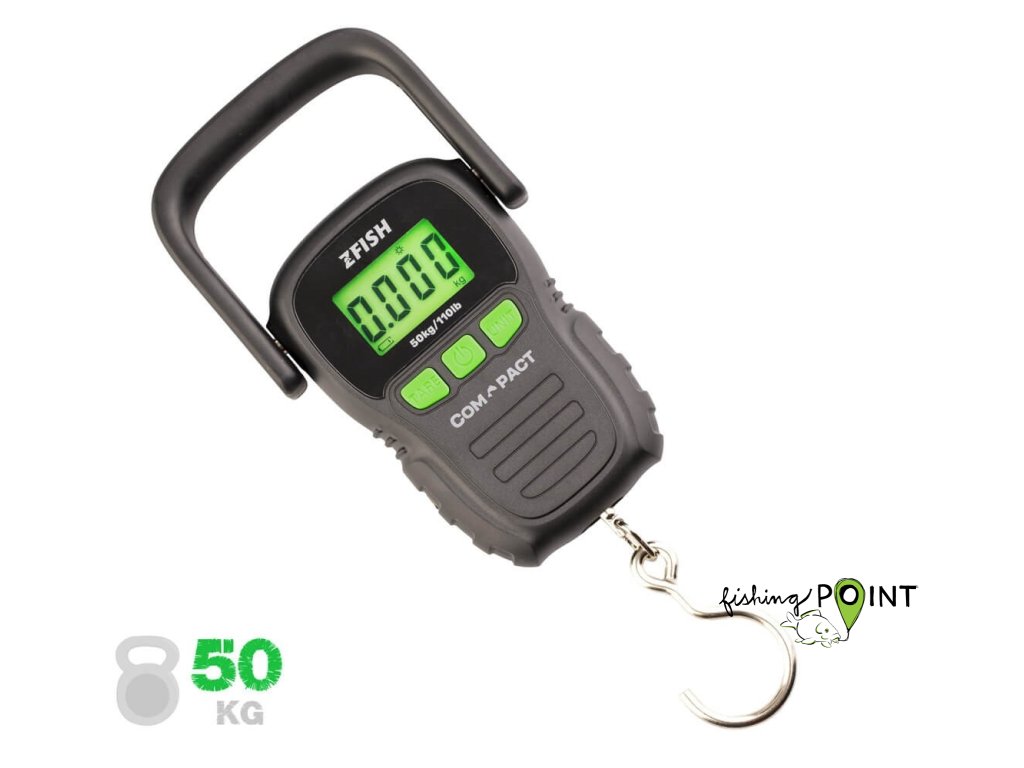 Česká značka ZFISH přichází s novým, kompaktním modelem velmi přesné digitální váhy. Tato váha umožňuje precizní vážení Vašich úlovků v rozmezí od 20g až do 50kg s jednoduchým ovládáním pomocí tří tlačítek. Zapnutí a vypnutí probíhá stisknutím tlačítka ON/OFF. Krátkými stisky tlačítka UNIT změníte jednotky hmotnosti (kg, lbs, oz), na displeji. Funkce TARE umožňuje odečet hmotnosti vážících pomůcek jako jsou saky a tašky. Kromě těchto funkcí váha disponuje podsvíceným displejem, digitálním teploměrem a indikací stavu baterie a rizika přetížení. Váha Compact Scale je navíc opatřena 150 cm samonavíjecím pásmem, takže úlovek si nejen snadno zvážíte, ale také změříte jeho přesnou délku. Velkou výhodou při manupulaci je pevná, masivní, integrovaná rukojeť, kterou je navíc možné zasunout tak, aby měla váha co nejmenší rozměry při transportu.