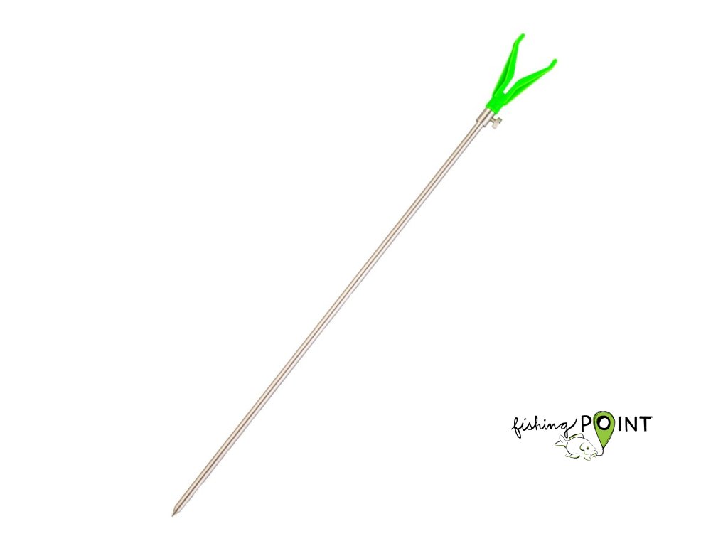 Pevná teleskopická vidlička vyrobená z kombinace hliníku a oceli se vsazeným ostrým hrotem pro snadné zapíchnutí i do tvrdšího povrchu. Vidlička má zakončení ve tvaru V s drážkou na vlasec. Délka: 55-95cm.
