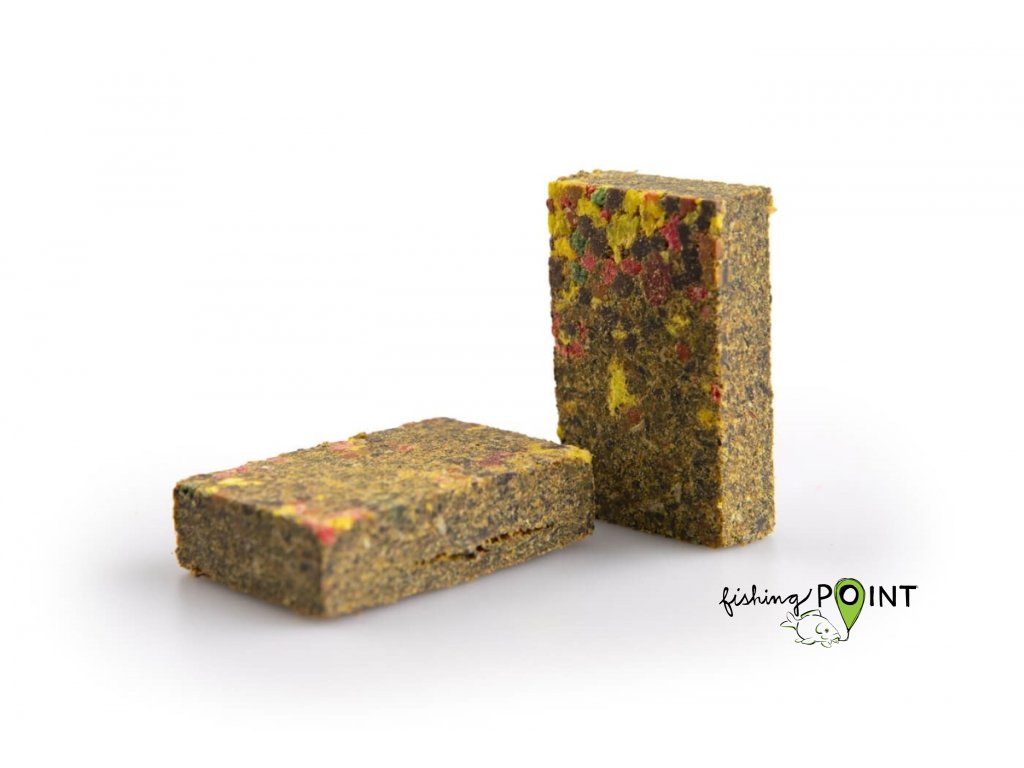 ZFISH Briquettes jsou žhavá novinka v našem krmném programu. Jedná se o velmi kvalitní a tlakově slisovaný, drobný partikl s krmítkovou směsí a anglickou vločkou, do tvaru malých kvádrů ( briket ). Obrovskou výhodou těchto “briket” je jejich skutečně pozvolné a pomalé rozpouštění a vytváření hustého a dlouhotrvajícího “oblaku” rozpuštěného krmiva. Samotné použití těchto briketek je velice snadné a univerzální a lze je používat celoročně, jak ve studené tak i teplé vodě. Dá se s nimi velice jednoduše zakrmit či dokrmit a zatraktivnit tak vaše lovné místo mnoha způsoby. Nejjednodušší je briketky samozřejmě ručně naházet, nebo nastřílet prakem, ale dají se bez problému použít do PVA punčošek, nebo například trochu “rozlámat” a přidat jako další složku do Vaší krmné směsi. Jak celé, tak částečně nalámané vydrží na krmném místě opravdu dlouho a díky svému hranatému tvaru a rozměrům ( 45x30x12mm ) je většina ryb nedokáže nasát, takže Vám je z rozkrmeného místa jen tak snadno “nevyluxují”. Tyto vlastnosti rovněž oceníte v proudech, kde briketkám výrazně napomáhají zůstat na požadovaném místě mnohem déle než běžné krmení, protože je proud prostě tak snadno neodnese. Věříme, že kdo je jednou vyzkouší, tak si jejich jedinečné vlastnosti zamiluje a stanou se nedilnou a univerzální součástí jeho krmné strategie.Neobsahuje konzervanty ( fish friendly )