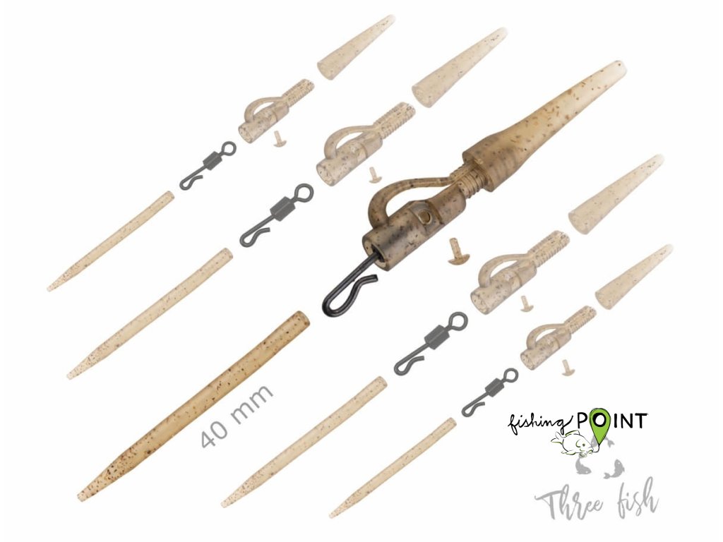 Kompletní sada prémiových závěsek 3v1 pro snadné navázaní koncové montáže, u které je kladen důraz na perfektní funkčnost i při použití silných šokových vlasců. Plně kompatibilní se všemi pevnostními obratlíky velikosti 8 i Quick Change obratlíky pro rychlou výměnu návazce. Závěska je vybavena speciálními zářezy, které perfektně udrží převlek na správném místě, aby nedošlo k samovolné ztrátě olova. Barva "INVISIBLE Z-CAMO" (zcela nová, dlouhodobě vyvíjená, speciální kamuflážní barva v kombinaci s průhledností materiálu zajištujě, že tato řada bižuterie je na dně pro ryby těměř neviditelná). Tato zcela nová řada s označením "3Fish", to je bižuterie v prémiové kvalitě. Kdo jednou zkusí a pozná ten rozdíl, jiné už chtít nebude.Obsah balení: 5x převlek Tail rubber, 5x závěska Lead Clip , 5x aretační kolík pro správné zafixování obratlíku, 5x Quick Change Swivel v prémiové kvalitě s antireflex (nelesknoucí) povrchovou úpravou, 5x 40mm Anti tangle proti zamotání návazce.