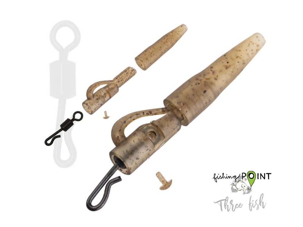Prémiové závěsky pro snadné navázaní koncové montáže, u kterých je kladen důraz na perfektní funkčnost i při použití silných šokových vlasců. Plně kompatibilní se všemi pevnostními obratlíky velikosti 8 i Quick Change obratlíky pro rychlou výměnu návazce.Závěska je vybavena speciálními zářezy které perfektně udrží převlek na správném místě, aby nedošlo k samovolné ztrátě olova. Barva "INVISIBLE Z-CAMO" (zcela nová, dlouhodobě vyvíjená, speciální kamuflážní barva v kombinaci s průhledností materiálu zajištujě, že tato řada bižuterie je na dně pro ryby těměř neviditelná). Tato zcela nová řada s označením "3Fish", to je bižuterie v prémiové kvalitě. Kdo jednou zkusí a pozná ten rozdíl, jiné už chtít nebude.