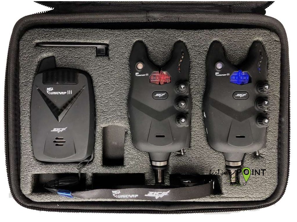 Sada v kufírku se dvěma indikátory UNICARP III a přijímač (2+1)+ zkušební baterie, popruh na krk, držák přijímače na opasekNový model UNICARP III s možností volby barvy navazuje na úspěšnou řadu indikátorů UNICARP. Do jeho originálně řešeného, kompaktního a voděodolného těla byla vložena elektronika té nejlepší kvality. Dvojitá kontrola výroby nám dovoluje poskytnout tříletou záruku, což řadí tento výrobek do vyšší kategorie na trhu. Unicarp III disponuje nejen originálním vzhledem, ale řadou UNI-kátních funkcí reflektujících potřeby předních kaprařů, ale reguje i na obecné požadavky běžných rybářů např. funkce "Incognito" -indikace záběru pouze na přijímači; "Lighthouse" pro lokalizaci lovného místa při zavážení, "Alarm" proti krádeži prutů; "Drop back" funkce- zpětný záběr (padák) indikovaný na "S" LED panelu a zvukem. Celé ovládání probíhá intuitivně tak jako u předchozího modelu. Pro přehlednost byl tento model vybaven pro zapnutí a vypnutí indikátoru páčkou. Zapnutím do polohy ON na "S" panelu navíc zobrazuje podíl dílků aktuálního nabití 9V baterie. Regulace hlasitosti "V", tónu "T" a citlivosti "S" je volena klasickými potenciometry se zobrazením hodnoty na "S" panelu. Modifikace nočního osvětlení, rolničky, paměťové diody a majáku je ovládáno tlačítkem - ZICO. Tímto se značně zpřehlednila volba jednotlivých funkcí a je zcela intuitivní. Napájení je řešeno 9V baterií, která je volně dostupná ve většině obchodech, nicméně životnost baterie určuje používání indikátoru. (vzdálenost mezi indikátorem a přijímačem, používání přední zavážecí diody apod.) Na přijímač lze snadno napárovat až 6 indikátorů s unikátním kódováním. Jednotlivé indikátory Unicarp III lze párovat i na předchozí přijímač setů UNICARP (ID UNI 2, UNI 3, UNI 4) a rovněž na přijímač UNICARP II a to stejným jednoduchým způsobem. Dostupnost pro jednotlivé indikátory řady Unicarp III je docílena prodloužením antény v jeho těle a dosahuje více než 200m. Vice o jednotlivých funkcích se dočtete v návodu viz."přílohy ke zboží" Výrobek se také dodává v kufírkových sadách 2+1, 3+1, 4+1 výhodou Unicarpu III je, že nemusíte vybírat barvu do vašeho setu, jelikož na Unicarpu III lze libovolně přepínat barvy- poslední zvolená se uloží do nastavení se svojí pozicí kanálu na přijímači (max 6 barev: žlutá, zelená, modrá, červená, fialová, bílá)