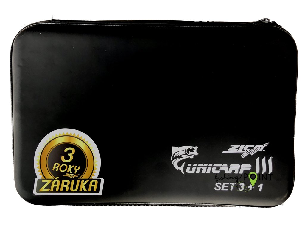 Sada v kufírku se třemi indikátory UNICARP III a přijímač (3+1)+ zkušební baterie, popruh na krk, držák přijímače na opasekNový model UNICARP III s možností volby barvy navazuje na úspěšnou řadu indikátorů UNICARP. Do jeho originálně řešeného, kompaktního a voděodolného těla byla vložena elektronika té nejlepší kvality. Dvojitá kontrola výroby nám dovoluje poskytnout tříletou záruku, což řadí tento výrobek do vyšší kategorie na trhu. Unicarp III disponuje nejen originálním vzhledem, ale řadou UNI-kátních funkcí reflektujících potřeby předních kaprařů, ale reguje i na obecné požadavky běžných rybářů např. funkce "Incognito" -indikace záběru pouze na přijímači; "Lighthouse" pro lokalizaci lovného místa při zavážení, "Alarm" proti krádeži prutů; "Drop back" funkce- zpětný záběr (padák) indikovaný na "S" LED panelu a zvukem. Celé ovládání probíhá intuitivně tak jako u předchozího modelu. Pro přehlednost byl tento model vybaven pro zapnutí a vypnutí indikátoru páčkou. Zapnutím do polohy ON na "S" panelu navíc zobrazuje podíl dílků aktuálního nabití 9V baterie. Regulace hlasitosti "V", tónu "T" a citlivosti "S" je volena klasickými potenciometry se zobrazením hodnoty na "S" panelu. Modifikace nočního osvětlení, rolničky, paměťové diody a majáku je ovládáno tlačítkem - ZICO. Tímto se značně zpřehlednila volba jednotlivých funkcí a je zcela intuitivní. Napájení je řešeno 9V baterií, která je volně dostupná ve většině obchodech, nicméně životnost baterie určuje používání indikátoru. (vzdálenost mezi indikátorem a přijímačem, používání přední zavážecí diody apod.) Na přijímač lze snadno napárovat až 6 indikátorů s unikátním kódováním. Jednotlivé indikátory Unicarp III lze párovat i na předchozí přijímač setů UNICARP (ID UNI 2, UNI 3, UNI 4) a rovněž na přijímač UNICARP II a to stejným jednoduchým způsobem. Dostupnost pro jednotlivé indikátory řady Unicarp III je docílena prodloužením antény v jeho těle a dosahuje více než 200m. Vice o jednotlivých funkcích se dočtete v návodu viz."přílohy ke zboží" Výrobek se také dodává v kufírkových sadách 2+1, 3+1, 4+1 výhodou Unicarpu III je, že nemusíte vybírat barvu do vašeho setu, jelikož na Unicarpu III lze libovolně přepínat barvy- poslední zvolená se uloží do nastavení se svojí pozicí kanálu na přijímači (max 6 barev: žlutá, zelená, modrá, červená, fialová, bílá)